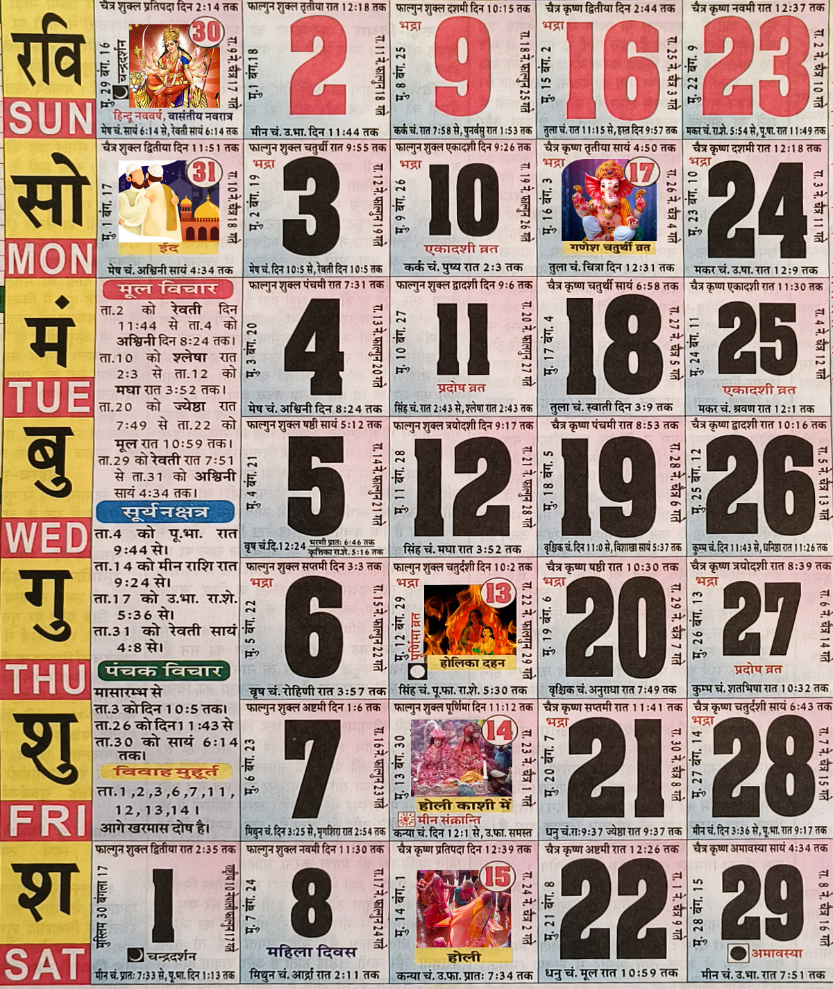 - 30.चैत्र नवरात्रि, श्री झूलेलाल जयंती, गुडी पडवा, चेटी चंद, ईद-उल-फितर